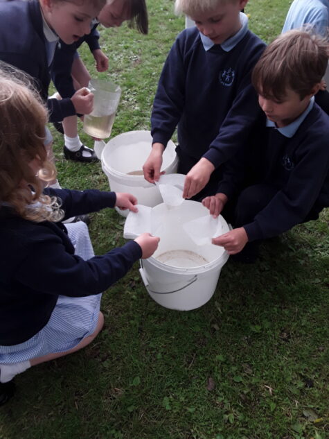 The lesson also explored the things that we can do for eels and all river wildlife, is to keep the water and their habitat clean. The students learnt first hand that it is far more challenging to clean water once it has become dirty, than it is to prevent it from becoming dirty in the first place through a practical demonstration. The activity included providing 2 buckets to a group: one empty and one ‘polluted’ (containing bits of biodegradable shopping bags and broken tea bags). The children used a combination of jugs and filter paper to remove the bits of plastic and tea in order to ‘clean’ the water. The children gave it their best shot, but they did struggle to clean the water, particularly the particles of tea. This activity demonstrated a key message: we must keep our rivers clean, because its difficult to clean them once they become polluted.