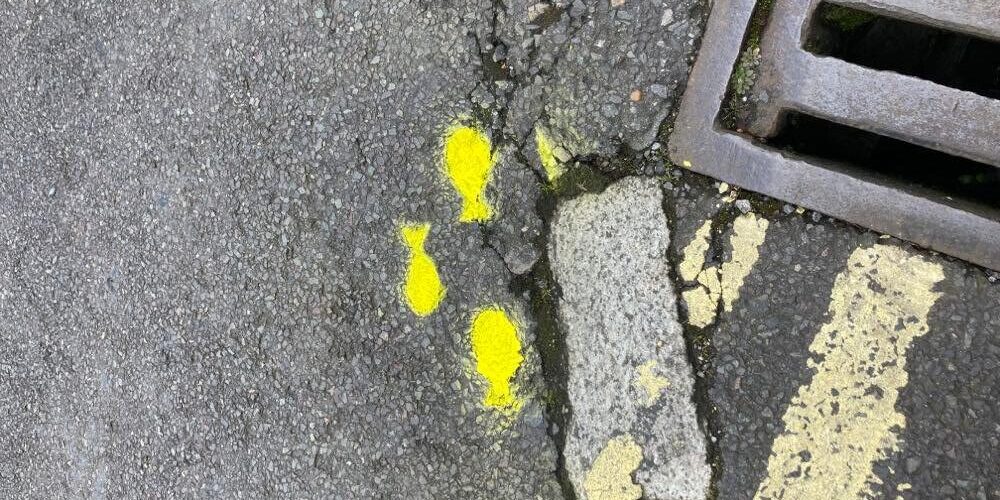 Members of the local community teamed up with BART to spray yellow fish stencils next to surface water drains using an environmentally friendly, chalk-based paint to raise awareness that only rain should go down the drain! Volunteers put up our eye-catching posters explaining the consequences of pouring toxic substances down the drain and to spread the message of preventing harm to river health and wildlife.